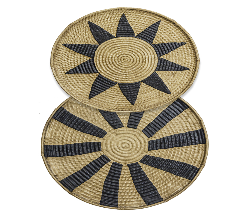 Σετ 2 μεταλλικοί δίσκοι έθνικ μπεζ-μαύρο 37/42εκ.