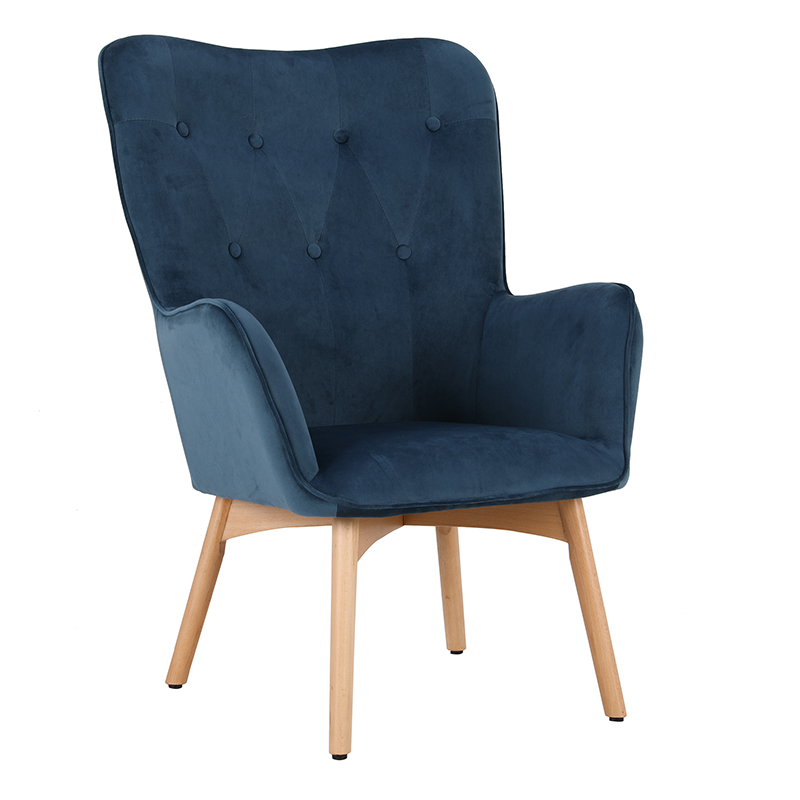 Πολυθρόνα μπλε βελούδο με ξύλινα πόδια