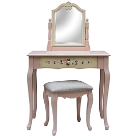 Σετ 3 τεμαχίων τουαλέτα καθρέπτης σκαμπό μπεζ ροζ