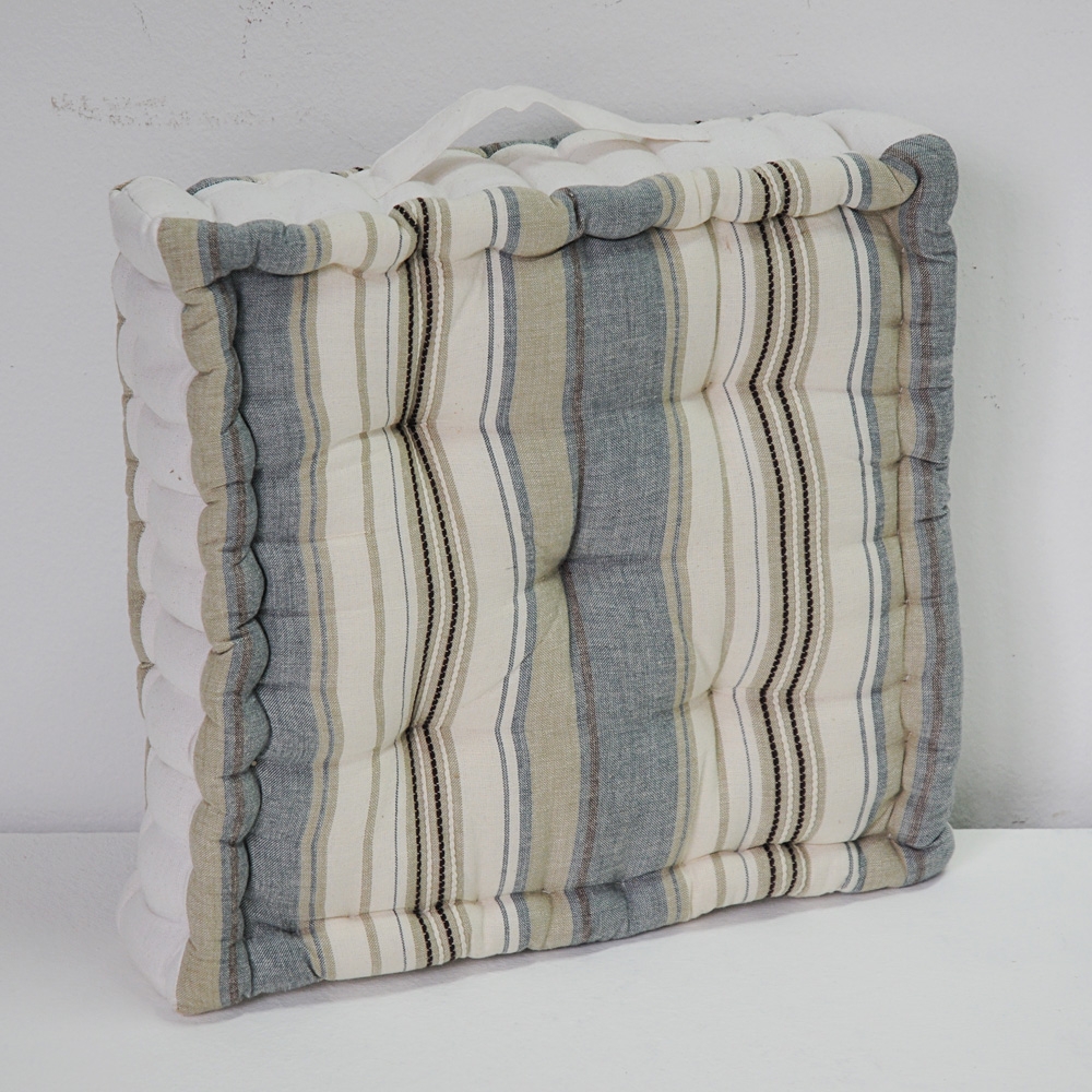 Μαξιλάρι καρέκλας τετράγωνο μπεζ με μπλε & καφέ ρίγες