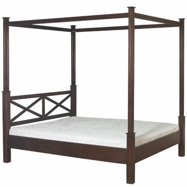 Ξύλινο κρεβάτι από μαόνι, με ουρανό